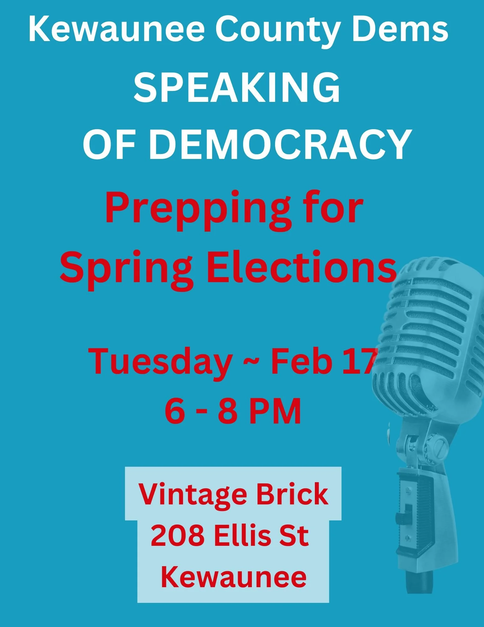 Join us at Vintage Brick, 208 Ellis Street, Kewaunee.