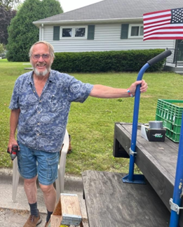 While Keith is the first to tell you it takes many hands to pull this off each year, Keith is the glue who makes it all come together! Keith not only has built the float from a reclaimed hay wagon, he also leads the thematic process, sourcing and making signs, banners and this year, a facsimile of Lady Liberty! He then drives the float as far as Sister Bay for their Fall Festival, as well as to Egg Harbor, Luxemburg and Algoma for their various events. Here’s a little about Keith: